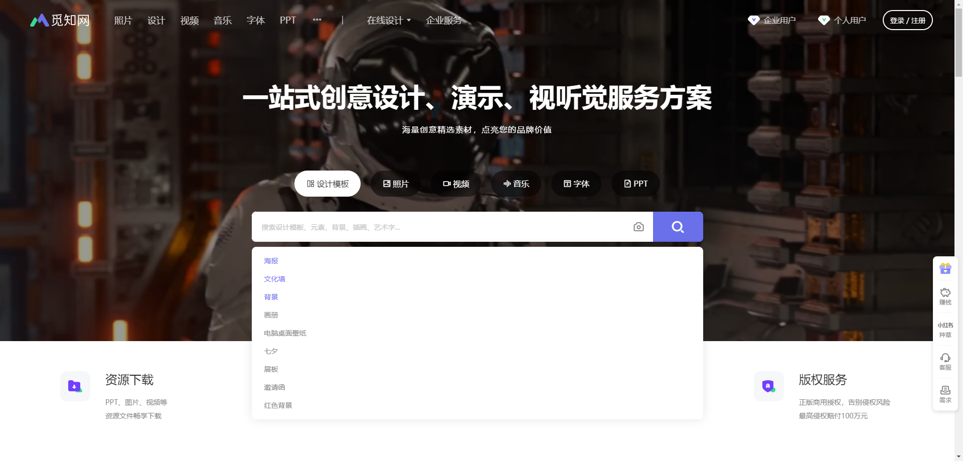 觅知网专注原创版权设计模板图片素材下载。超过200万PPT模板、海报、PNG素材、背景、插画、元素、摄影图片、字体、视频、音频素材大全供会员免费下载。10000+各行业优质设计师每日...