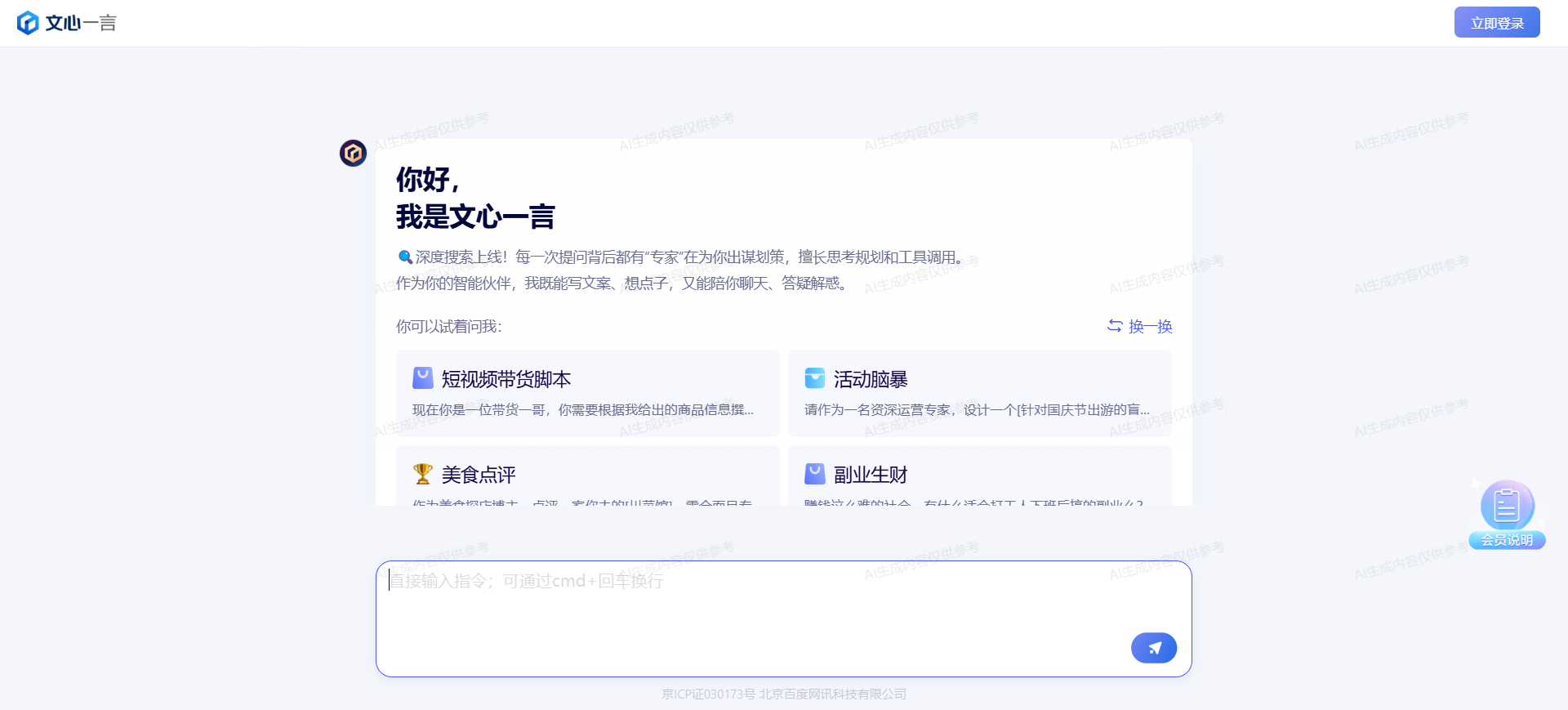 百度搜索上线!每一次提问背后都有“专家”在为你出谋划策,擅长思考规划和工具调用。 作为你的智能伙伴,我既能写文案、想点子,又能陪你聊天、答疑解惑。